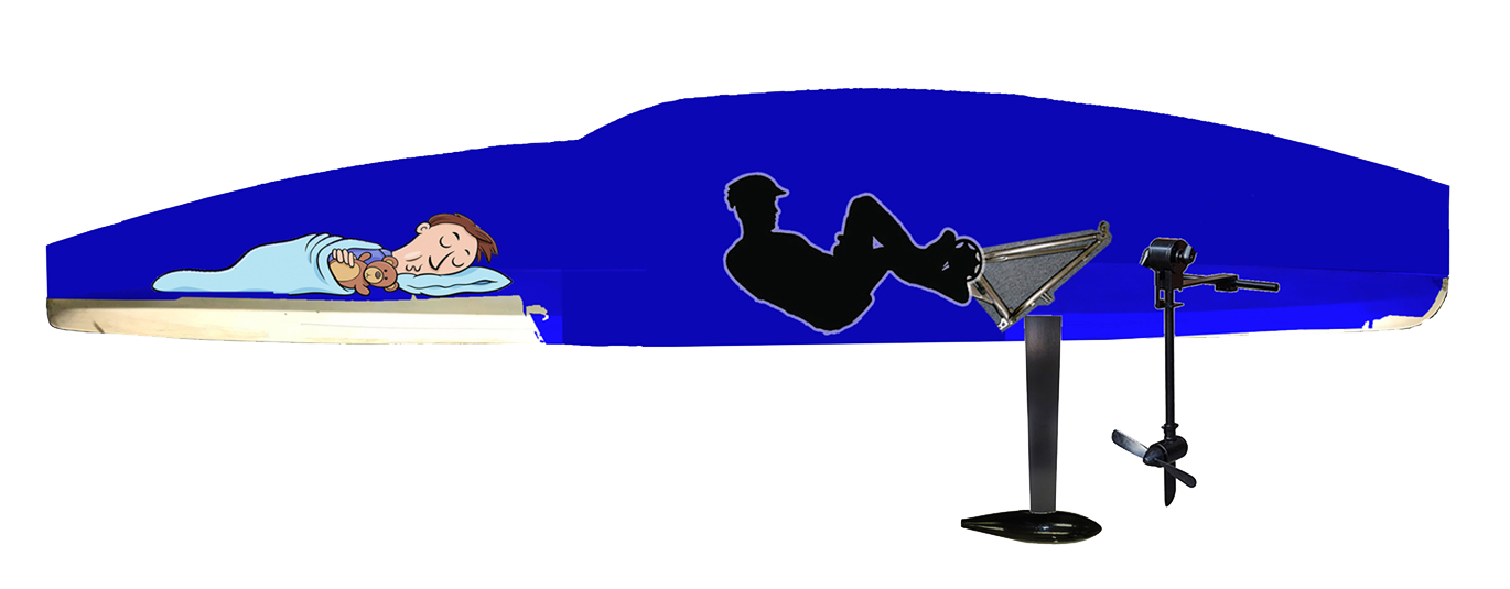 She’s 22′ long, at present (should finish up at 24′ on the water, 26 to 28′ LOA) and will be 100% Pedal Powered and 100% Pedal Propelledd! While I will have a lot of emergency options on board and system redundancy will be prevalent.. I won’t have SOLAR as a back up electrical generator.. just my owwn two legs pumping away!